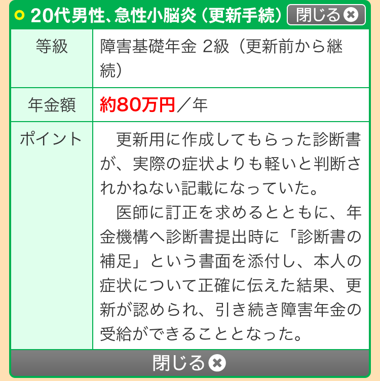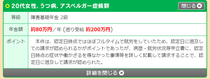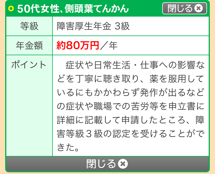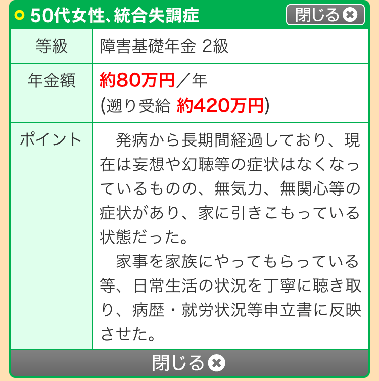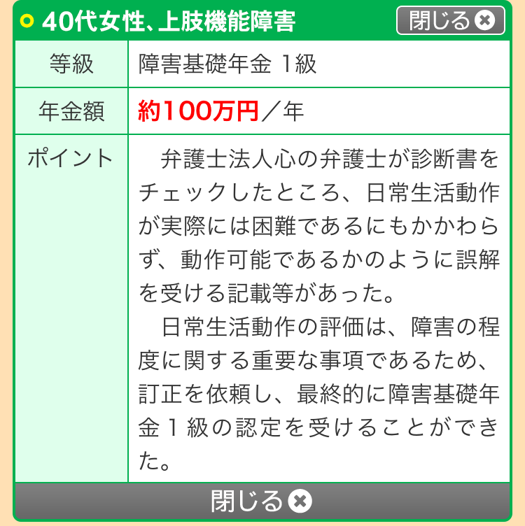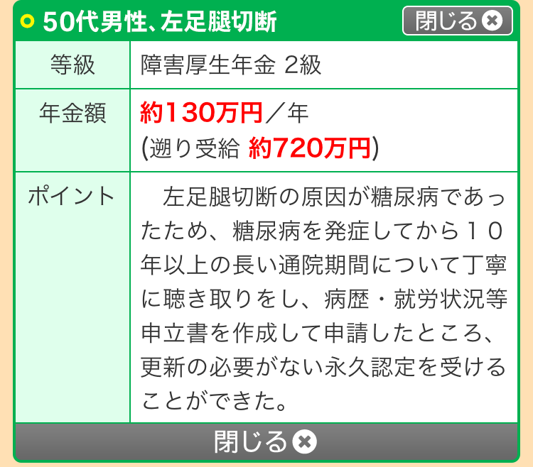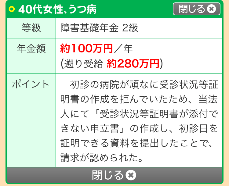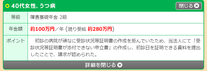 こちらでは、私たちがサポートしてきた受給事例をご紹介しています。様々な傷病の申請を行っていますので、障害年金の申請サポートはお任せください。