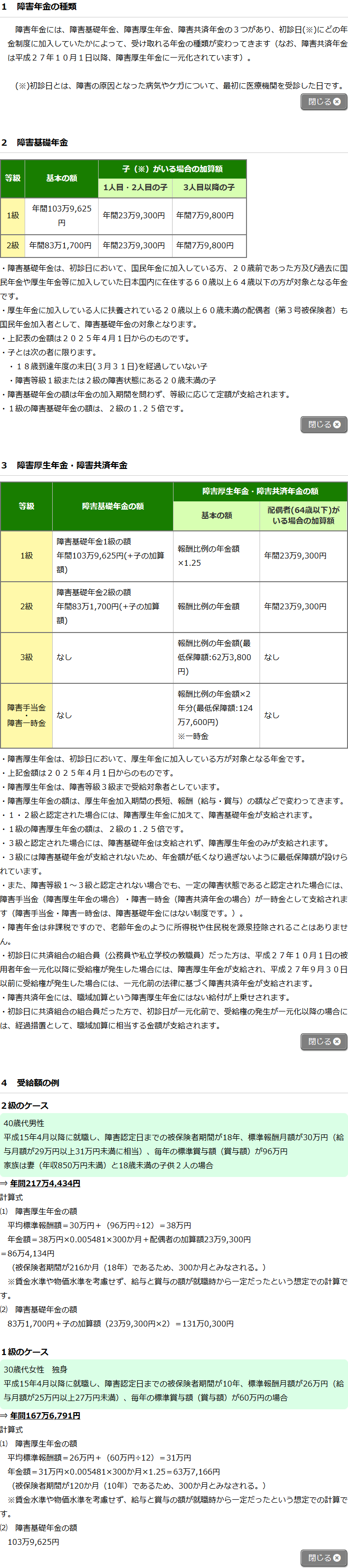障害年金が受給できた場合にもらえる金額について掲載しています。加入していた年金の種類や等級などによって金額は異なります。