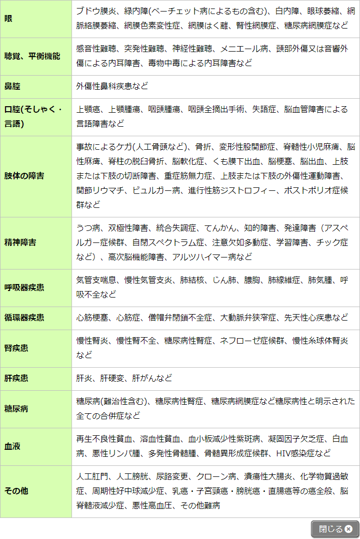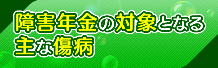 こちらでは、障害年金の対象となる傷病について、主なものをピックアップして掲載しています。障害年金の対象となるのか分からない方へは診断も行っております。