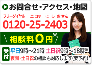 こちらからは、私たちの事務所の住所や連絡先などをご確認いただけます。ご相談をご希望の方は、まずはフリーダイヤルまたはメールフォームからお問い合わせください。