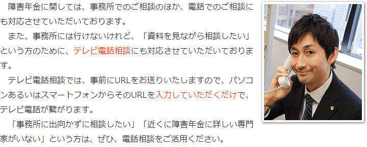 トップその他電話・テレビ電話相談について 階層構造▼ その他(目次) 電話・テレビ電話相談について その他(目次)その他トップ共通バナー※消さない障害年金無料診断サービス初めて障害年金を申請の方へ手続きの流れ代表・所長メッセージ電話・テレビ電話相談について電話・テレビ電話相談の流れ心グループニュース(新着情報)お客様相談室費用の安さにこだわる理由関連リンクプライバシーポリシー 受付時間 平日 9時~21時、土日祝 9時~18時 夜間・土日祝の相談も対応します (要予約) 所在地 〒060-0808 北海道札幌市北区北八条西4‐1-1パストラルビルN8 2F 0120-25-2403 お問合せ・アクセス・地図
