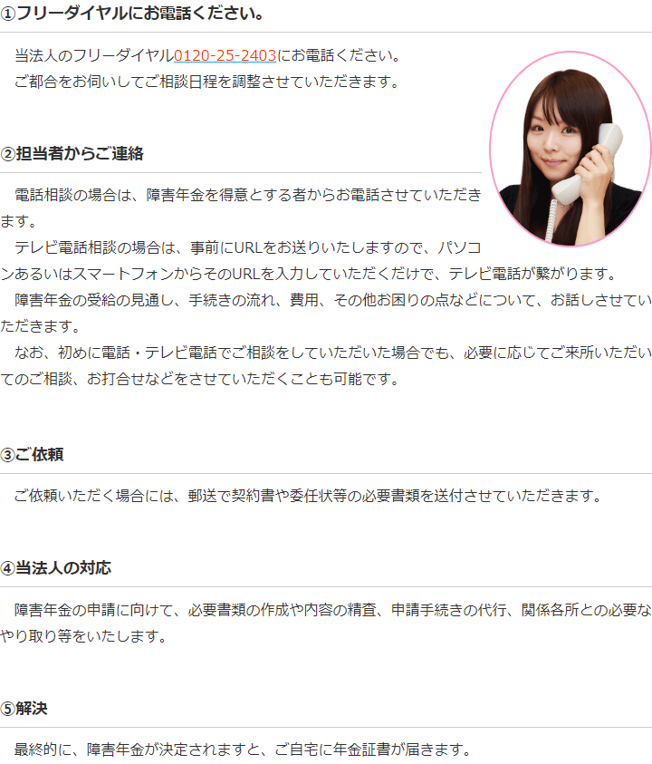 トップその他電話・テレビ電話相談の流れ 階層構造▼ その他(目次) 電話・テレビ電話相談の流れ その他(目次)その他トップ共通バナー※消さない障害年金無料診断サービス初めて障害年金を申請の方へ手続きの流れ代表・所長メッセージ電話・テレビ電話相談について電話・テレビ電話相談の流れ心グループニュース(新着情報)お客様相談室費用の安さにこだわる理由関連リンクプライバシーポリシー 受付時間 平日 9時~21時、土日祝 9時~18時 夜間・土日祝の相談も対応します (要予約) 所在地 〒060-0808 北海道札幌市北区北八条西4‐1-1パストラルビルN8 2F 0120-25-2403 お問合せ・アクセス・地図