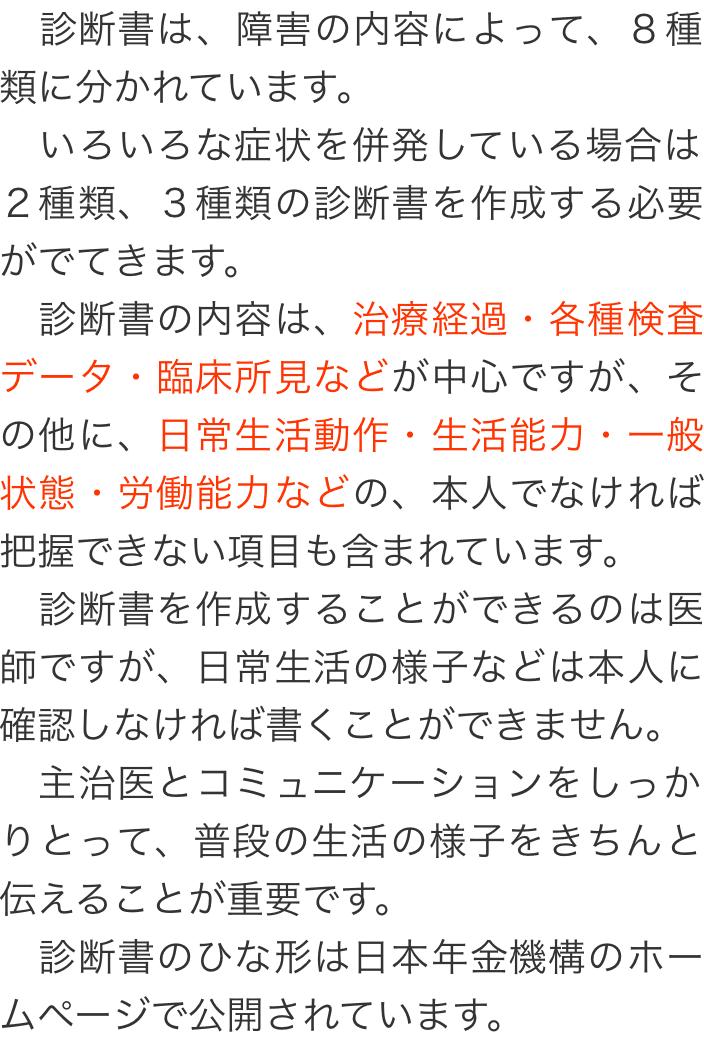 トップお役立ち情報障害年金で必要な書類 階層構造▼ お役立ち情報(目次) 障害年金で必要な書類診断書病歴・就労状況等申立書受診状況等証明書年金請求書 診断書病歴・就労状況等申立書受診状況等証明書年金請求書 お役立ち情報(目次)お役立ち情報トップ障害年金を受給するためのポイント障害年金で必要な書類障害年金申請が不支給になった時の対応について不支給通知が届いた場合働きながら障害年金を受給できる場合家族に気付かれないように障害年金を受給することはできるのか精神疾患について障害年金が認められる基準障害年金の種類額改定請求について障害者手帳について 受付時間 平日 9時~21時、土日祝 9時~18時 夜間・土日祝の相談も対応します (要予約) 所在地 〒060-0808 北海道札幌市北区北八条西4‐1-1パストラルビルN8 2F 0120-25-2403 お問合せ・アクセス・地図