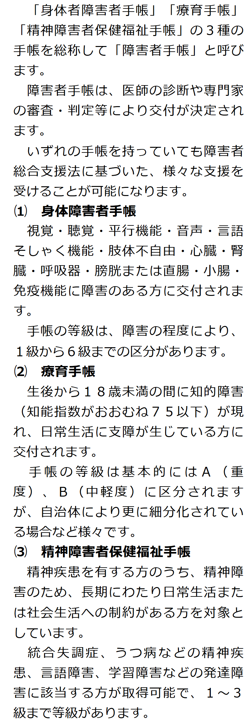 トップお役立ち情報障害者手帳について 階層構造▼ お役立ち情報(目次) 障害者手帳について1 障害者手帳とは2 障害者手帳を取得するメリット3 障害者手帳の申請手続きと支給条件 1 障害者手帳とは2 障害者手帳を取得するメリット3 障害者手帳の申請手続きと支給条件 お役立ち情報(目次)お役立ち情報トップ障害年金を受給するためのポイント障害年金で必要な書類障害年金申請が不支給になった時の対応について不支給通知が届いた場合働きながら障害年金を受給できる場合家族に気付かれないように障害年金を受給することはできるのか精神疾患について障害年金が認められる基準障害年金の種類額改定請求について障害者手帳について 受付時間 平日 9時~21時、土日祝 9時~18時 夜間・土日祝の相談も対応します (要予約) 所在地 〒060-0808 北海道札幌市北区北八条西4‐1-1パストラルビルN8 2F 0120-25-2403 お問合せ・アクセス・地図
